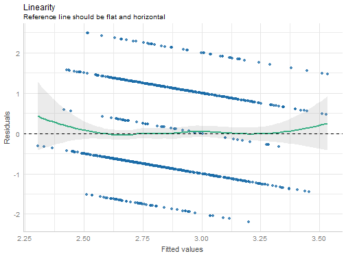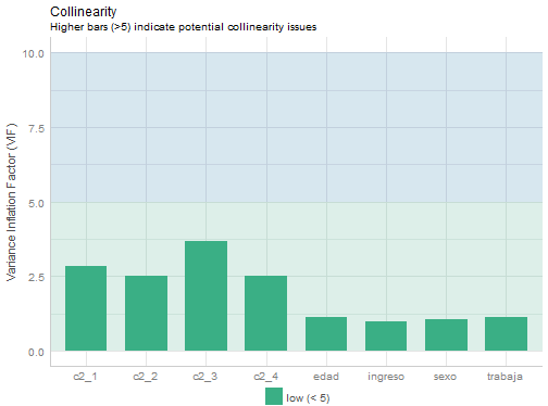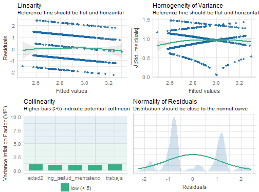 class: front .pull-left[ # Estadística Multivariada ## Valentina Andrade .small[ ## Apoyo docente ## Sociología FACSO - UChile ## 1er Sem 2021 ## [multivariada.netlify.com](https://multivariada.netlify.com) ]] .pull-right[ .right[  <br> <br> ## Clase 10: Diagnóstico de la calidad de los modelos: supuestos y transformación de variables 📌[URL a práctica](https://multivariada.netlify.app/assignment/10-code/) ] ] --- layout: true class: animated, fadeIn --- class: inverse, bottom, right, animated, slideInRight # Objetivo Introducir en aspectos de la evalución de la *calidad de los modelos* a partir del chequeo de supuestos, adjuste y comparación. --- class: inverse, bottom, right, animated ## Contenidos ### 0. ¿Cómo se evalúa la calidad de los modelos? -- #### 1. Robustez -- #### 2. Bondad de ajuste -- #### 3. Comparación --- class: roja, bottom, right, slideInRight # 0. ¿Cómo se evalúa la calidad de los modelos? --- class: fadeIn # 0. ¿Cómo se evalúa la calidad de los modelos? .pull-right[Una vez que construimos nuestros modelos de regresión, es necesario evaluar la calidad de estos] .pull-left[] --- # 0. ¿Cómo se evalúa la calidad de los modelos? .pull-left[ ¡A ponerlos a prueba! ] .pull-right[ ¡Evaluarlos! ] --- class: fadeIn # 0. ¿Cómo se evalúa la calidad de los modelos? .center[  **Figura 1**. Proceso de evaluación de la calidad de los modelos estimados. Elaboración propia ] --- # 0. ¿Cómo se evalúa la calidad de los modelos? **1. Robustez** (*pre-hoc*): los modelos de regresión tienen una serie de **supuestos** que se deben cumplir para que las estimaciones sean **fidedignas**. - Algunos de ellos son **linealidad**, **normalidad de residuos**, **homogeneidad de la varianza**, **independencia de variables**, **multicolinealidad** y **casos influyentes** (*los primeros tres aplican solo para regresiones lineales*). --- # 0. ¿Cómo se evalúa la calidad de los modelos? **2. Ajuste** (*post-hoc*): implica abordar qué tan bien ajustan nuestros modelos con los datos utilizados. La *bondad de ajuste* implica que si trabajamos con una - 2.1 *Regresión lineal múltiple*, analizaremos el `\(R^2\)` ajustado - 2.2 *Regresión logística*, analizaremos el `\(Pseudo\)` `\(R^2\)` y los *Criterios de Información* `\(BIC\)` y `\(AIC\)` (ambos nos dicen cuánta información se está "perdiendo" con las variables que se ocupan en cada modelo. Por ello elegiremos el modelo que tenga un BIC y AIC más bajo) --- class: inverse # Pero ¡no te asustes! - Que no se cumplan algunos supuestos no implica que debas abandonar el **lindo mundo de las regresiones**. Como veremos, existen formas de solucionar los problemas de supuestos y ajuste de los modelos. .center[  ] --- # 0. ¿Cómo se evalúa la calidad de los modelos? **3. Comparación**: luego de que hacemos **transformaciones** a los modelos, una etapa importante para la **selección** de estos es compararlos. Para ello consideraremos toda la información que tenemos de ellos en su diagnóstico de **pre y post hoc.** --- # 0. ¿Cómo se evalúa la calidad de los modelos en **R**? - Existen diversas funciones, pero la gran parte de ello se desenvuelve en distintos paquetes. -- - ¡Buenas noticias! **`performace`** que reúne todas estas herramientas, y de los tres ejes de la **calidad de los modelos**. .center[  ] --- # 0. ¿Cómo se evalúa la calidad de los modelos en **R**? .center[  **Figura 2.** paquete `performance` del proyecto easystats de [Lüdecke et al. (2021)](https://easystats.github.io/performance/) ] --- class: roja, bottom, right, slideInRight # Diagnóstico de calidad de los modelos --- # 0. Construcción del modelo Imaginemos que queremos analizar los determinantes de la **Fatiga pandémica**, y para ello estimaremos un modelo de regresión lineal. ```r model1 <- lm(as.numeric(fatiga) ~ c2_1 + c2_2 + c2_3 + c2_4 + trabaja + sexo + edad + ingreso, data = movid_proc) ``` --- class: slideInRight # 1. Supuestos .center[  **Figura 3**. Diferentes funciones de `performance` para evaluar robustez del modelo ] --- class: slideInRight # 1.1 Linealidad Para la regresión lineal múltiple, un supuesto importante es que existe una **relación lineal entre la variable dependiente e independiente**. .center[  ] --- # 1.1 Linealidad - Cumplimiento supuesto: visualizar *gráfico de dispersión de datos*, que relacione la variable dependiente y la independiente, y verificar de manera "intuitiva" si la **tendencia** de esta relación se puede describir por una **línea recta**. .center[  ] --- # 1.1 Linealidad El paquete `performace` nos permite hacer esto con su función `check_model` indicando en el argumento `check = "ncv", "linearity"` ```r check_model(model1, check = c("ncv", "linearity")) ``` <!-- --> ✔️ La línea de referencia es plana y horizontal --- # 1.1 Linealidad - No siempre es tan claro. Para ello se podría emplear el test de Ramsey .center[  ] --- # 1.2 Homocedasticidad - Concepto indica que **los residuos** se distribuyen de forma **homogénea**. .center[  ] --- # 1.2 Homocedasticidad - La variación de los residuos es homogénea,es decir, no veremos un patrón claro y más bien se *distribuirán de forma aleatoria*. .center[  ] --- # 1.2 Homocedasticidad - Prueba *Breusch-Pagan Godfrey* cuya hipótesis nula indica que `\(H_0\)`: La varianza de los residuos del modelo de regresión no es constante (**heterocedasticidad**) --- # 1.2 Homocedasticidad - Función `check_heteroscedasticity` verificaremos qué ocurre con la hipótesis nula ```r check_heteroscedasticity(model1) ``` ``` ## OK: Error variance appears to be homoscedastic (p = 0.494). ``` ✔️ La varianza es homocedástica --- # 1.3 Normalidad de residuos - Sin **distribución normal** de los residuos: el modelo no es consistente a través de las variables y observaciones (esto significa que los errores **no son aleteatorios**). .center[  ] --- # 1.3 Normalidad de residuos - Función `check_normality` utilizaremos la prueba *Shapiro-Wilk* p